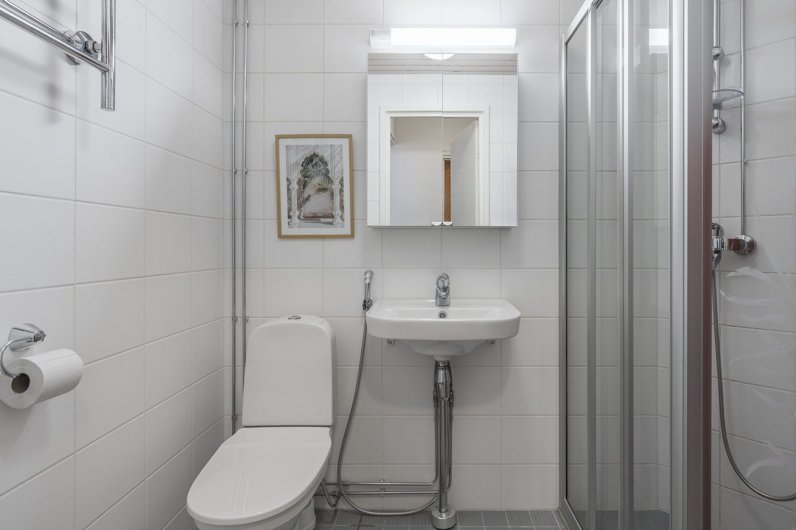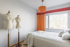 Makuuhuoneen yhteydessä on erillinen vaatehuone, joka tuo kaivattua säilytystilaa ja tekee asumisesta sujuvaa. Remontoidussa kylpyhuoneessa on tilaa löytyy hyvin myös pyykinpesukoneelle.